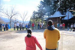 朝ごはんが完成した後は“朝づくり”です。 “朝づくり”とは毎朝行う、掃除や動物のえさやりなど暮らしのひと仕事のことです。みんなが暮らしていくために分担して頑張ります。