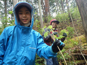 作業の下見にあんじゃねの森に行きました。あんじゃねの森は長年こどもたちが薪を調達したり、遊んだりしてきた森です。春の森には、旬の山菜“コシアブラ”が食べごろでした。下見もしながら、夜ごはんのおかずも採ってきました。