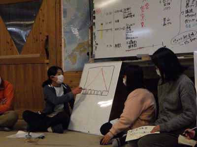 窯焚き本番、4時間のローテンションで窯焚き当番を回していきます。窯は生き物です。どんなタイミングで、何を基準にして何本の薪をと臨機応変に対応していくので、だいだらぼっちの窯焚きでは、話し合いがとても重要なのです。