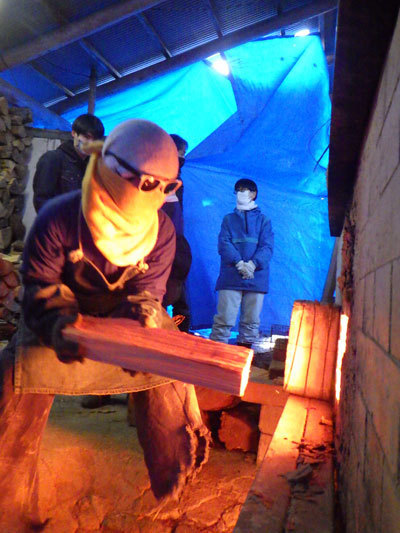 木曜日の夕方の火入れから約65時間。日曜日の朝10時頃に焚き上げました。ヘトヘトになったけどみんなよくがんばりました。今日から1週間ゆっくりと作品を冷やして来週窯出しです。さてどんな作品になっているかな?楽しみです。