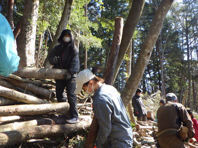 こちらは薪になる木をいただきに村の方の山までやって来ました。いつもこどもたちのことを気にかけて声をかけてくれます。本当に村の方にお世話になりながらだいだらぼっちは成り立っています。
