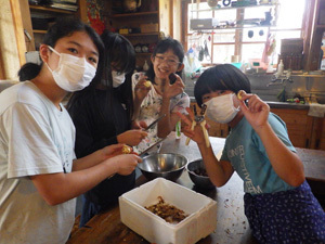 庭の栗も食べごろになりました。「栗の皮むきハマる!」「ぴったりな道具見つけた!」と言いながら、黙々と手作業を進めます。一見手間がかかることも、みんなでワイワイやれば楽しくなる!