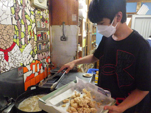 そして、こちらでは運動会特別お昼ごはんを作っています。応援メンバーも含めると、なんと約50人分!ですが、日頃から30人分近くのご飯を作っているので何のその!手慣れた手つきで、どんどん唐揚げを揚げていくヒロマサでした。