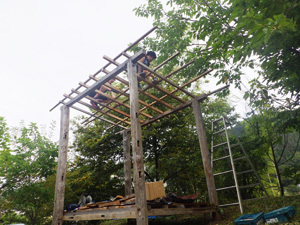 だいだらぼっちの週末は、やりたいことに時間をかけられます。こちらは、昨年度から始めている“小屋づくり”です。今は屋根部分に着手しています。