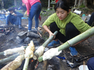 「ご飯には楽しみとこだわりを持ちたい!」ということで、竹のまきまきパンをやってみました。美味しく仕上げるためには、絶妙な火加減が重要です。焦がさないようじっくり・ゆっくり焼いていきます。