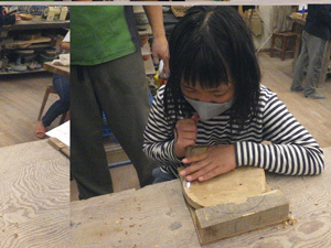 こちらはトリシアが木のお皿を彫っています。木工もひたむきに一彫り一彫り進めていきます。無数のノミの跡が積み重ねを教えてくれます。とても素敵な時間です。