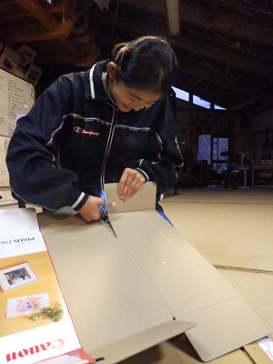 来週に控えただいだらぼっち祭りの準備も大詰め、段ボールで劇の小道具を作ります。脚本も演出も衣装も小道具も全部手作り。大変だけどこれが面白いんです。