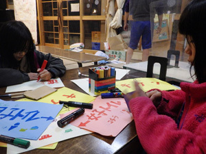 お祭りの準備は劇だけではありません。会場係の仲っちとラムネは看板を作っています。来てくれる人たちが安全に楽しく過ごせるようにどんな看板があればいいのか想像力を働かせます。