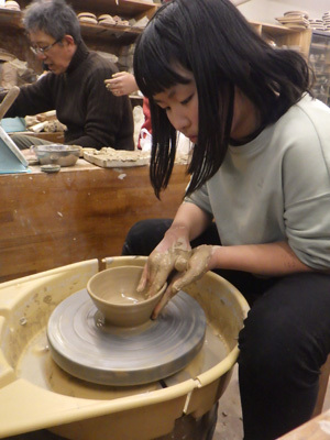 2月に焚く登り窯に向けこどもたちは作品作りをしています。あーちゃんは力の下限が難しい電動ろくろにチャレンジ中です。