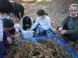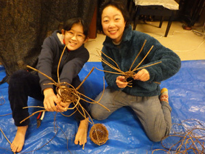 こちらはつる細工チームです。先日村のつる細工名人に教えてもらいやる気満々のふーみんとすみれです。秋から冬にかけてはつる細工の季節なので今のうちにたくさんチャレンジしよう!