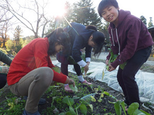 今回収穫したのは、日本で泰阜村にしか原種が残っていないと言われている“源助かぶ菜”です。冬の寒さにも負けず元気に育っていておいしそうです。