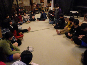 2学期のものづくりについて振り返りをしました。去年からつる細工を続けているトリシアは村のおばあさんに教わり感激したことをみんなに話してくれました。それぞれの感じたこと、これからやりたいことをシェアして応援しあうのがだいだらぼっちです。
