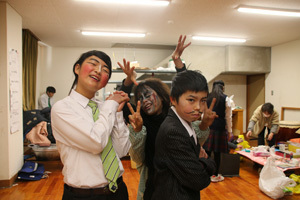 こちらはだいだらぼっち劇場「zombi or alive」の舞台裏です。1ヶ月半練習してきた個性的な役とも今日でお別れです。一回きりの本番、大切に演じるぞ!