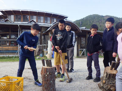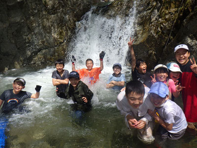 予定していた田んぼ作業が終わり、余った時間で川遊び!遊びの時間は自分たちで生み出します。まだまだ水は冷たいけれど、大はしゃぎのこどもたちです。