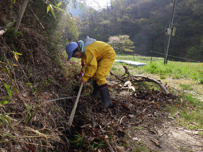 週末に田んぼの水路の落ち葉をかきだす作業をしました。落ち葉は水をふくんでいて持ち上げるのも一苦労。それでも、田んぼに水をいれるためにせっせと働く1年目のなっちょるです。