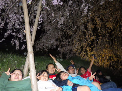 村のお宅にお邪魔して夜桜を見せてもらいました。大きな桜の木の下に入り、視界いっぱいに広がる桜を眺めました。この時期にしか見られない絶景に感動です。
