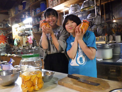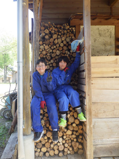 「薪作業が一番楽しい!」と張り切って、風呂焚きに使う小枝を運ぶなっちょる。薪はだいだらぼっちの暮らしには必要不可欠。小さな枝も「もったいない!」と落とさないよう頑張っていました。