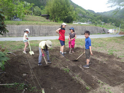 小さな稲を育てるために、畑に苗床をつくりました。簡単そうに見えて、水平に苗床をつくるのが難しい!「3年目でも慣れないよ」と言いながら、丁寧に掘り進める仲っちゃんです。