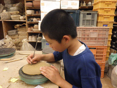 なっちょるは朝食皿に模様を掘っています。「食べている時にどんな柄だと楽しいかな」「オリジナリティのある皿にしたいな~」とワクワクする時間です。