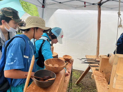 ものづくりの勉強に色々な分野のものづくりの職人さんが出店するクラフトフェアに行きました。こどもたちは「これは何でできているんですか?」「どうやって作るんですか?」と興味津々です。