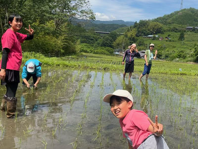 田んぼの草取りも本格的に始まりました。始まる前には「収穫目指して頑張るぞ!」「オー!」と声を出して気合い入れをしました。