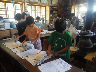 だいだらぼっちの暮らしを届ける冊子「通信」のおりつめ作業をしました。冊子の中身を書くだけでなく、読んでくれる人に冊子を届けるまでこどもたちが関わります。「読む人がいるから冊子にしわをつけないようにね」とこどもからこどもへ声をかけていました。