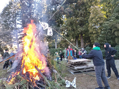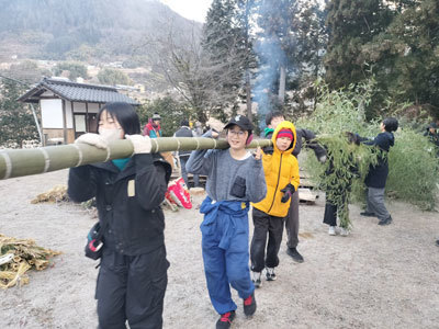 村の行事である「どんど焼き」に参加しました。今年はこどもたちが土台から作ります。慣れた様子で大きな竹を運ぶのを見て、村の方が驚きながら褒めてくれました。日々の作業が役立つときです。