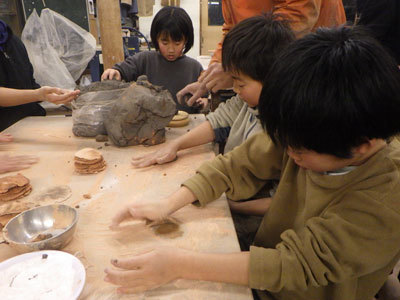 作品を登り窯で焼くときに使う土を丸めています。今まで何度も土を触ってきたので、丸める作業はお手の物。役割を分担しながら、次々と形作っていきます。