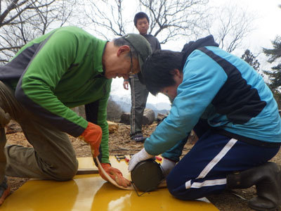 曲げわっぱ作りにチャレンジしている2年目の竹輪丸。長い時間煮続けてやわらかくした板を曲げ、いよいよ大詰めです。曲がるように、でも折れないようにと緊張が高まります。