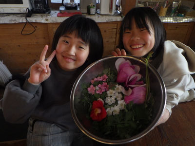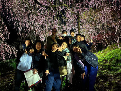 村の方のお家に咲いている枝垂れ桜を見に行きました。「最高のお花見スポット!見に来てよかった」と大満足。今の時期しか見れない景色を楽しみました。