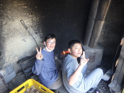 学校から帰ってきたらお風呂を焚くのが日課です。1年目のまさやは、2年目のキャンプから火の起こし方や薪の選び方を教わりながら練習しています。