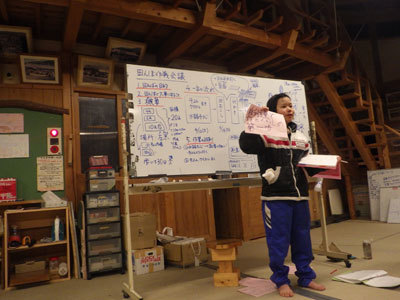 これから始まる田んぼ作業に向けて、作戦会議を行いました。「田んぼ作業は‟自分たちで作る暮らし”の第一歩。」作業をするうえで大事なことを4年目の仲っちゃんが語ります。