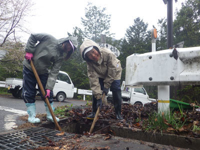 同じ地区に住む村の方々と一緒に道路を掃除する「道路愛護」という活動に参加しました。村の一員として一生懸命働きます。