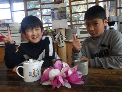 なおきのマイブームは草を採って乾燥させたものでお茶を出すこと。この日はモクレンの花にチャレンジしました。モクレン茶はいい香り!まさやにも振る舞って一緒に楽しみました。