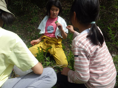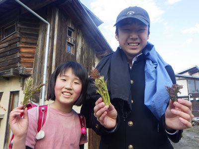 お昼ごはんの後は、今、旬の山菜のコゴミをたくさん採りました。どうやって食べようかとのはとゆいはワクワクしています。