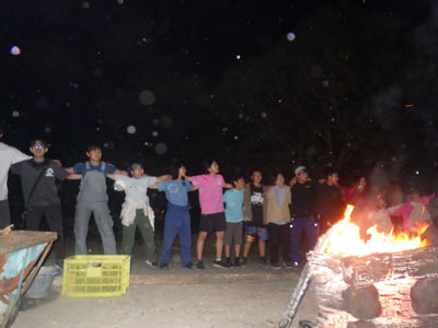 「作業の疲れを楽しい疲れに変えたい!」と夜はキャプファイヤーを行いました。歌って踊ってレクをして、ヘトヘトだけど大盛り上がり!団結力も高まりました。