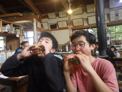 合宿を終え、打ち上げとして夜ご飯にハンバーガーを食べました。なんとパンもハンバーグも手作りです!どんなに疲れていても「頑張ったからこそみんなで特別な料理を味わいたい」と手間を惜しみません。おいしいハンバーガーにお腹も心も満たされました。
