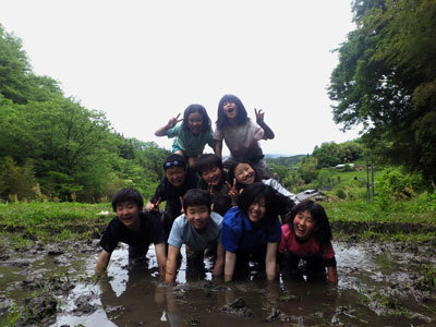 田んぼで鬼ごっこをしたりボール遊びをしたり…「こんな泥だらけになったことなんてない!」と全力で遊びました。田植え前の今だからこそできることを存分に楽しみます。