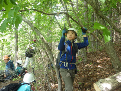 田んぼに行く新しい道として、今はほとんど使われていない旧道を整備しました。道にかかる枝や木を処理しながら歩く作業に「開拓していく感じが楽しい」と夢中の2年目のダイキです。