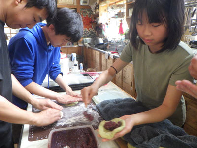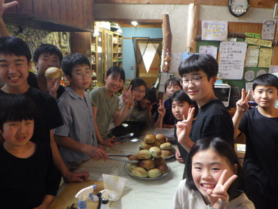 母屋にパンの焼けたいい匂いが広がって、みんなが集まってきました。「よもぎぱんがふかふか!」「あんこの程よい甘さが合う」と春の美味しさを分かち合いました。