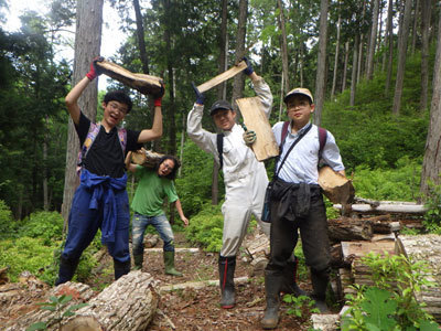 たくさん遊んだ後は薪を持ち帰ります。薪作業も遊びも両方できて一石二鳥!日常的に薪作業をして冬に備えられるよう頑張ります。