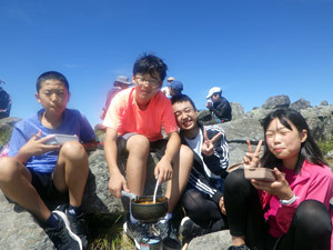 無事に全員で登頂できました!頂上まで3時間の道のりでした。
