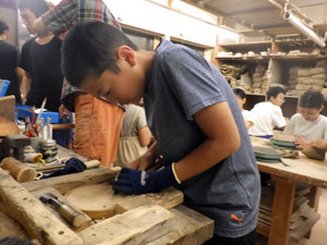 週に2回のものづくりの日。小6のまさやは木お皿を彫り始めました。コツコツ彫るので根気が必要です。