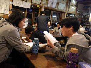 祭りの劇の台本の読み合わせです。台本を作ったメンバー以外は初めて内容を知ります。どんな劇になるか、わくわくした雰囲気です。