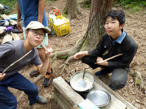 畑で育てたポップコーンを持って行き、焚き火で炒って食べました!森の中で食べるゼロから手作りのポップコーンは格別の美味しさでした。