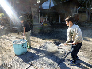わらの恩恵は納豆だけではありません。こちらは大量に燃やしてわらの釉薬(焼き物に使ううわ薬)を作っています。