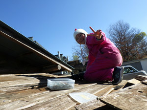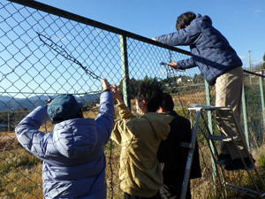 なかっちはニワトリ小屋の屋根を修理しています。4年前に1年目だったなかっちが葺いた屋根なので想いはひとしおなのです。