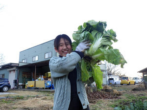 顔よりも大きく育った白菜を収穫しました。どう食べようか、わくわくが広がりました。