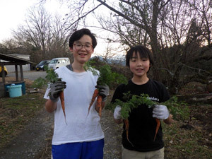 「寒いけど、まだ大きくなるかもしれない!」と収穫を遅らせていたニンジンをついに収穫しました。小さめのニンジンでしたが、少し大きくなっており満足気です。