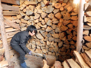 また大きな薪は登り窯で使いやすい大きさに割りました。薪が乾燥していて割りやすいと薪割りの爽快感で夢中に作業しています。